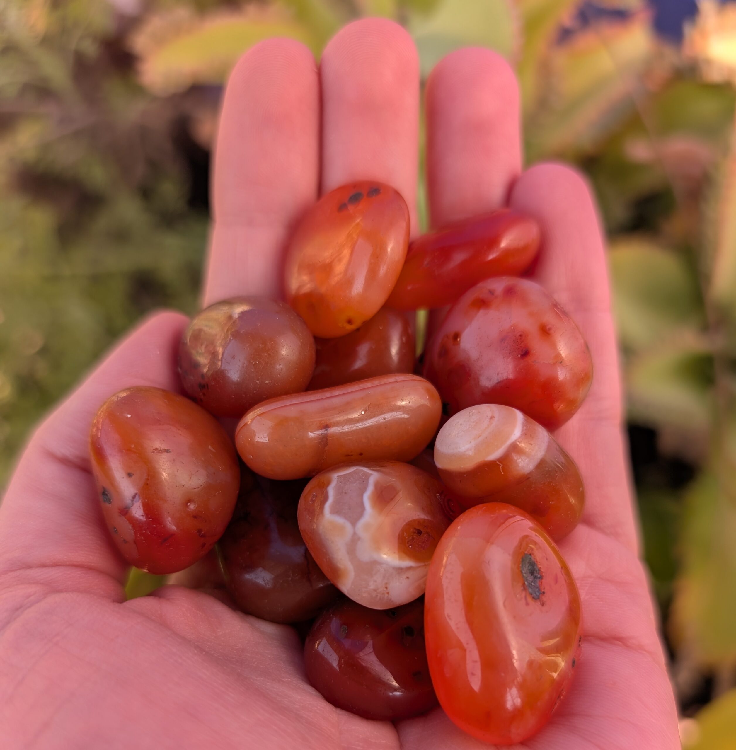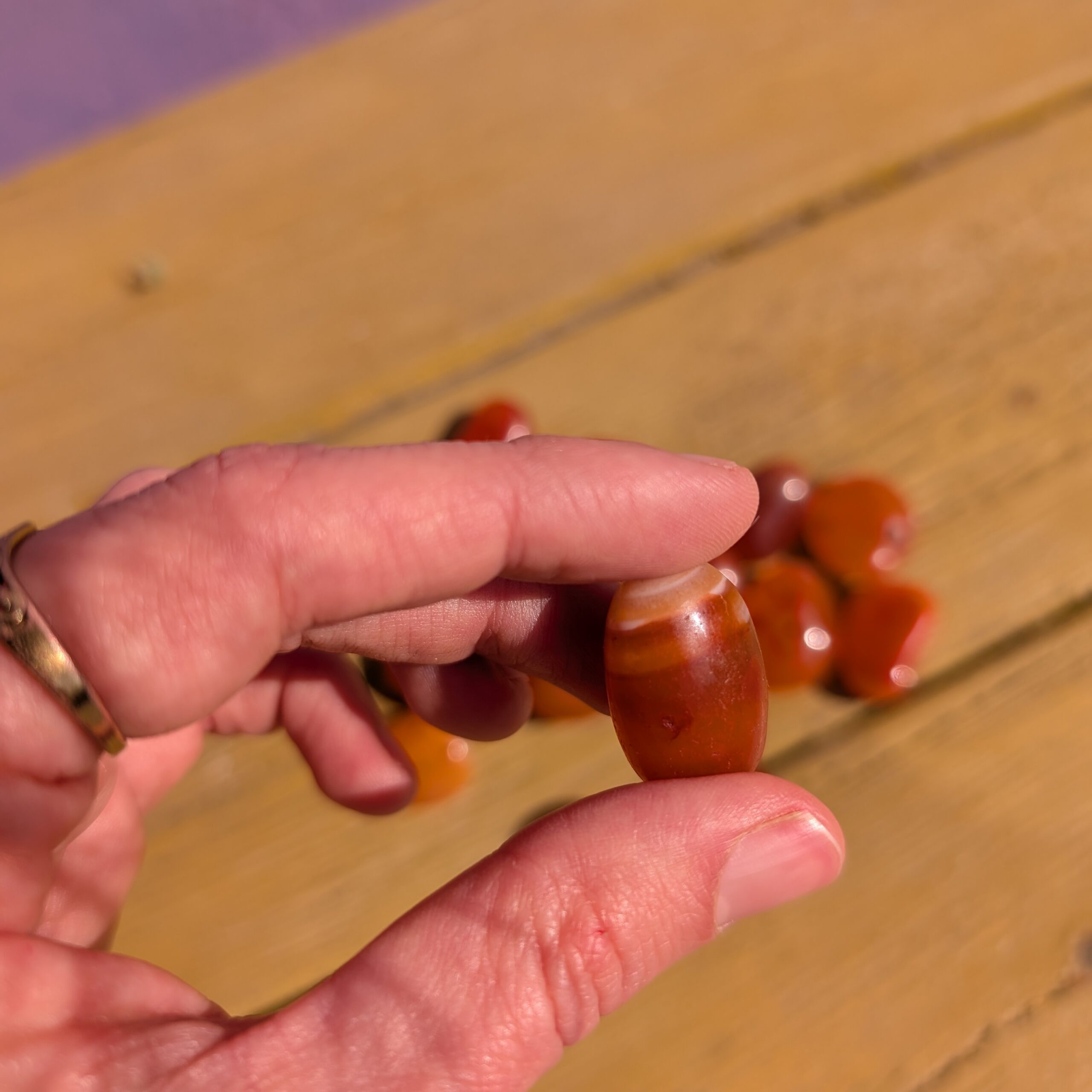 אבן עסיסית שמחוברת לצ’אקרת המין והרגש. מתייחסת לעולם היצירתי, היצרי, המיני והרגשי שלנו ומאזנת אותו. מחזיקה תדר נשי ומעודן ומעצימה אותו אצל נשים וגם אצל גברים. זו אבן של שמחה! מביאה שמחת חיים ועליזות, מאזנת רגשות של כעס, מכניסה מרץ איפה שצריך, מרימה מוטיבציה, ומחברת לאנרגיה של פריון – מיצירת חיים ועד ליצירת כל דבר שנרצה ליצור בחיינו. הקרנליאן מחברת לזמן הווה ומשפרת את יכולת הריכוז שלנו. היא גם טובה לפרפורמרים/יות ויוצרים/ות כי היא מחברת ליצירתיות ולריכוז בזמן ההופעה.